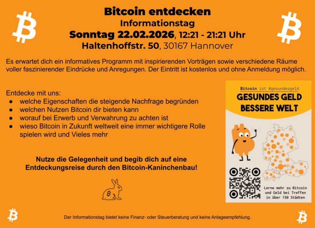 -Komm doch einfach mal in Hannover zum bitcoin Informationstag vorbei, vielleicht ist @StefanBode dieses Jahr auch wieder Vor Ort und hält einen Vortrag am 22.02.2025.